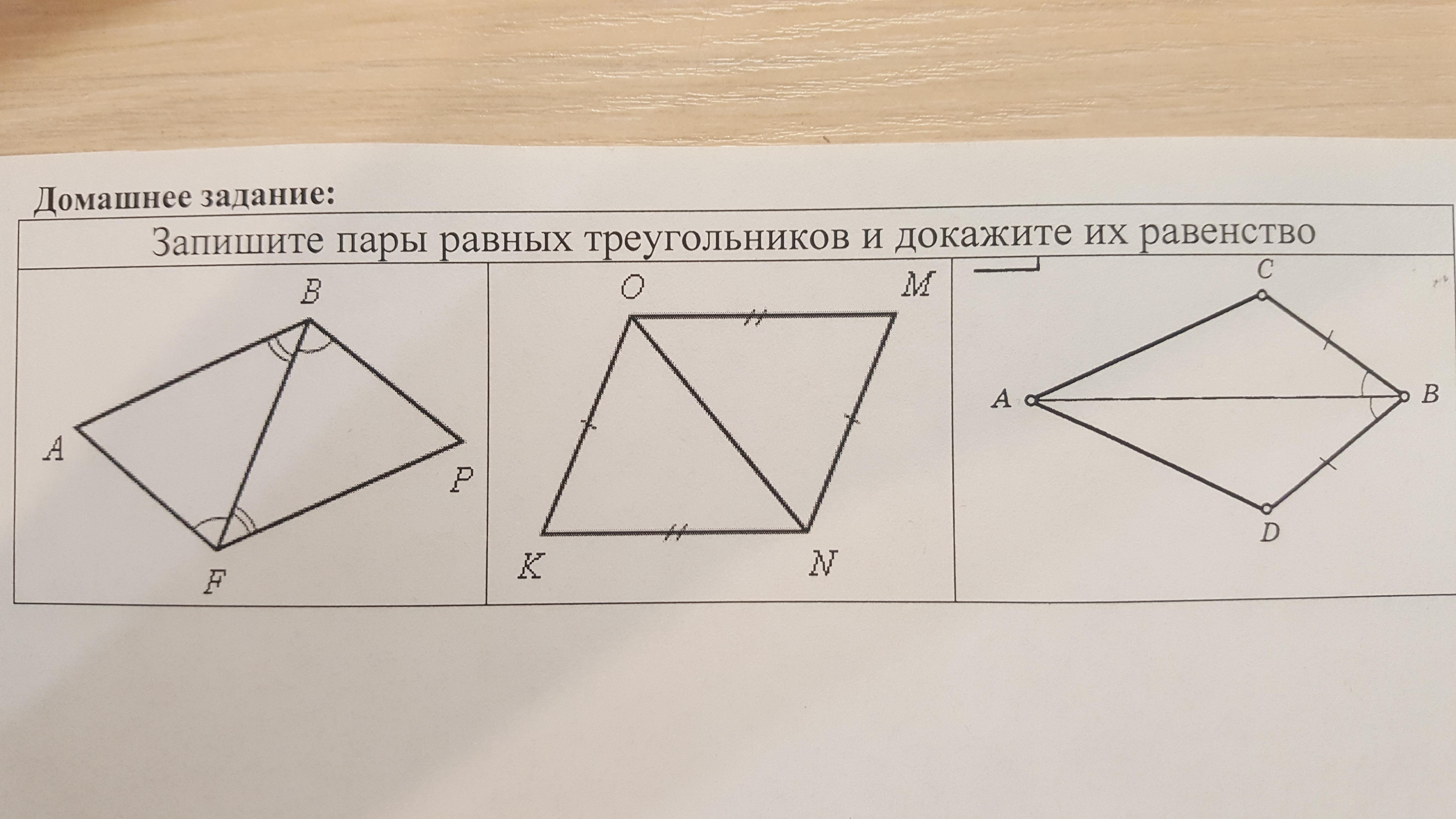 То есть если параллельные стороны OM и KM равны, то это параллелограмм. В параллелограмме противоположные стороны равны, значит и треугольники в нём соответственно тоже.