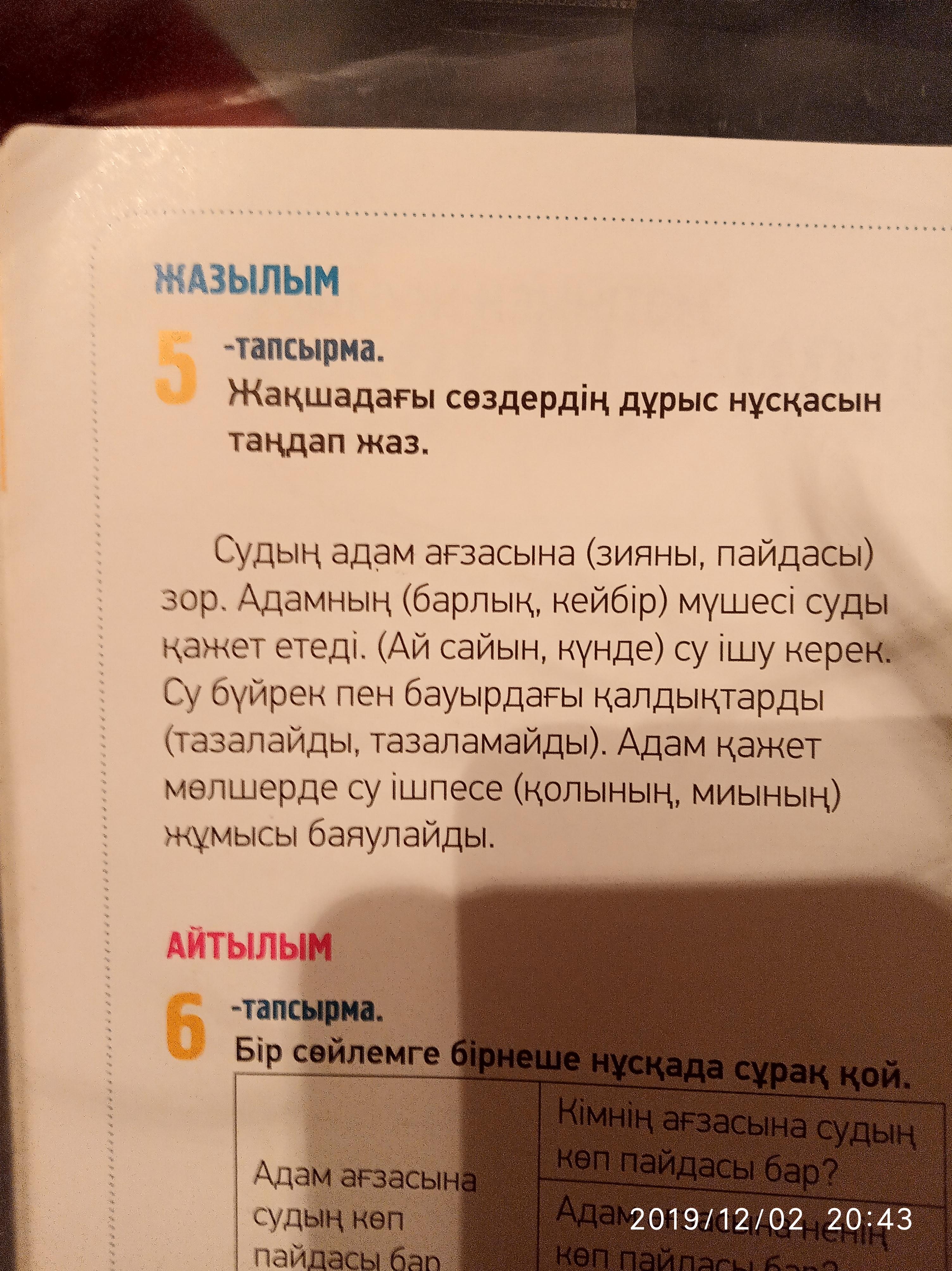 Судын адам агзасына пайдасы зор. Адамнын барлык мушеси суды кажет етеди. Кунде су ишу керек. Су буйрек пен бауырдагы калдыктарды тазалайды. Адам кажет молшерде су ишпесе миынын жумысы баяулайды.