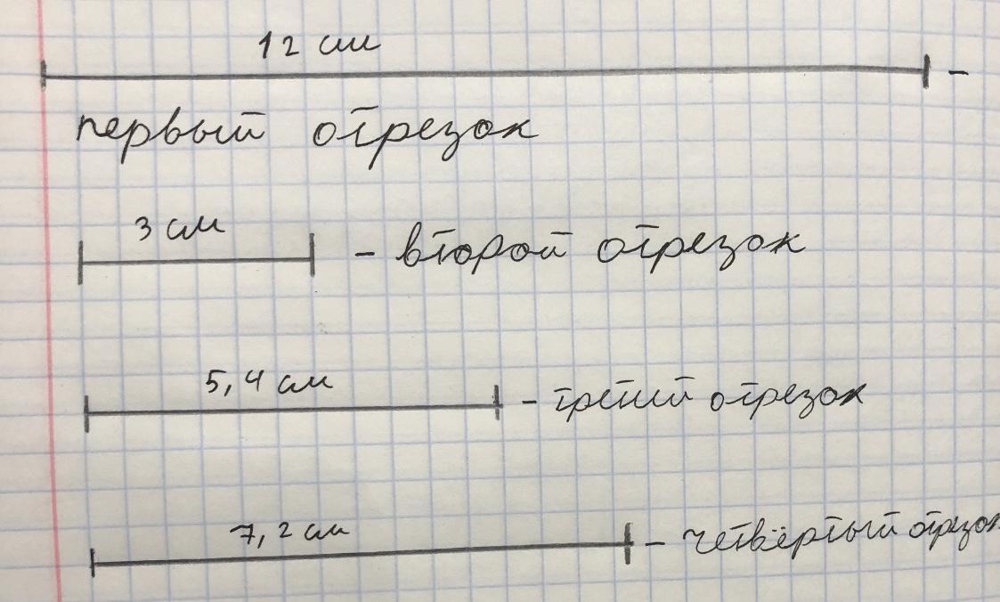 Длина третьего отрезка=12:100*45=5,4 см