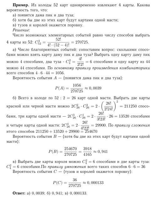 Из колоды карт (52) одновременно извлекают 4 карты. Какова вероятность того, что: