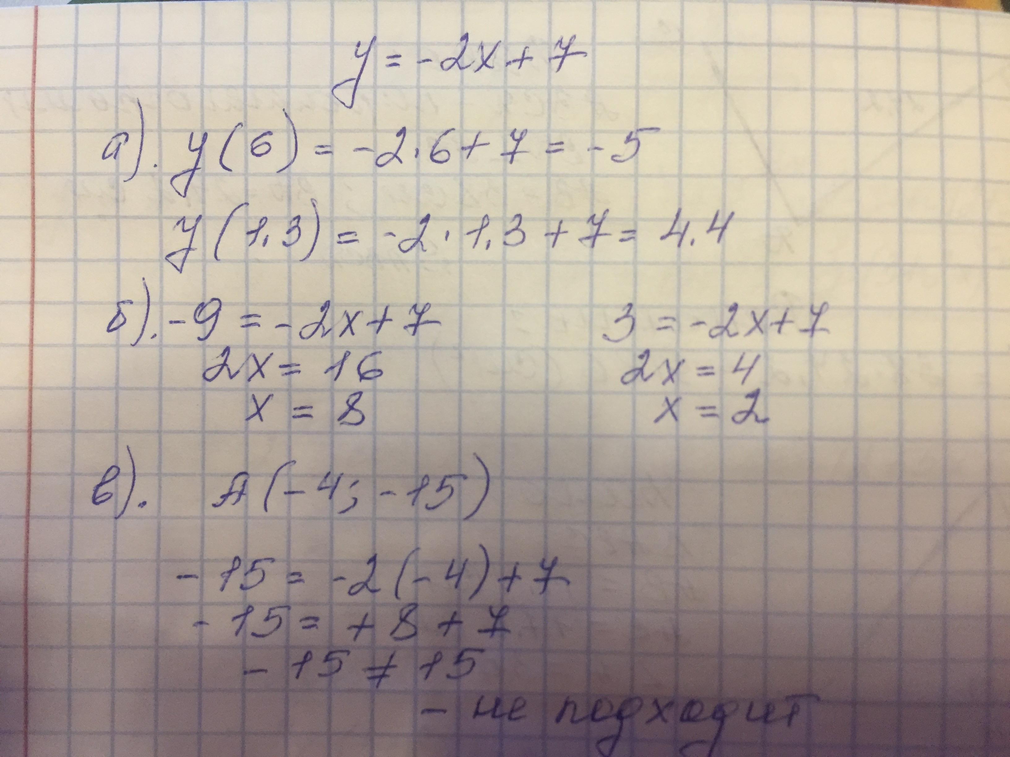 3) Проходит ли график функции через точку A ( -4; -15).