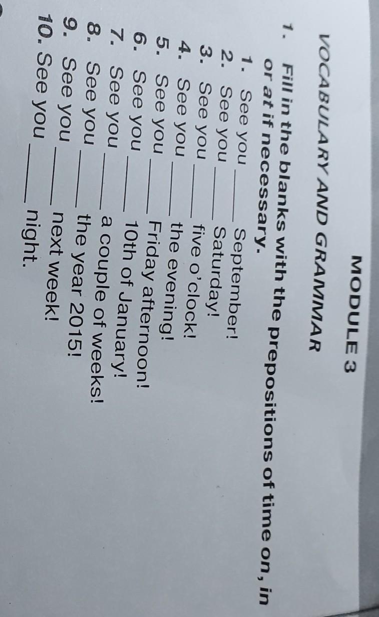 Fill in the blanks with the prepositions of time on, in or at if necessary.