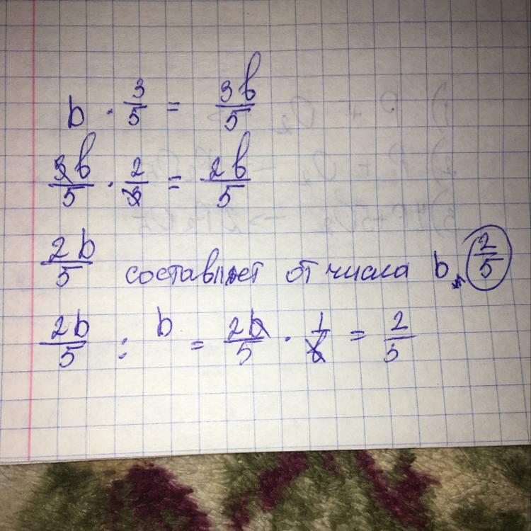 Число b умножили на 3/5,а потом произведение увеличили в 2/3 раза.Какую часть составляет полученный результат от числа b?