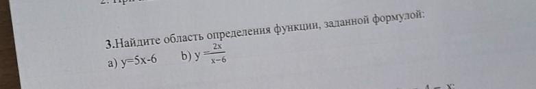 б) Для этой функции существует ограничение, т.к. аргумент стоит в знаменателе дроби, а как известно, делить на 0 нельзя. Поэтому нам нужно исключить из области определения ззначение х, при котором знаменатель (х-6)=0.