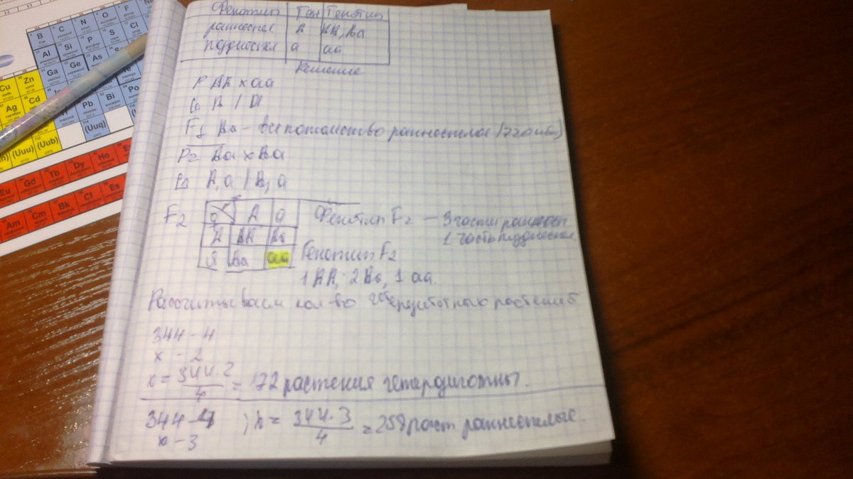 От скрещивания раннеспелого овса с позднеспелым получено 720 раннеспелых растений. При самоопылении гибридов первого поколения получили 344 растений. Определить фенотип и генотип потомков второго поколения. Сколько гетерозиготных и раннеспелых растений во втором поколении.