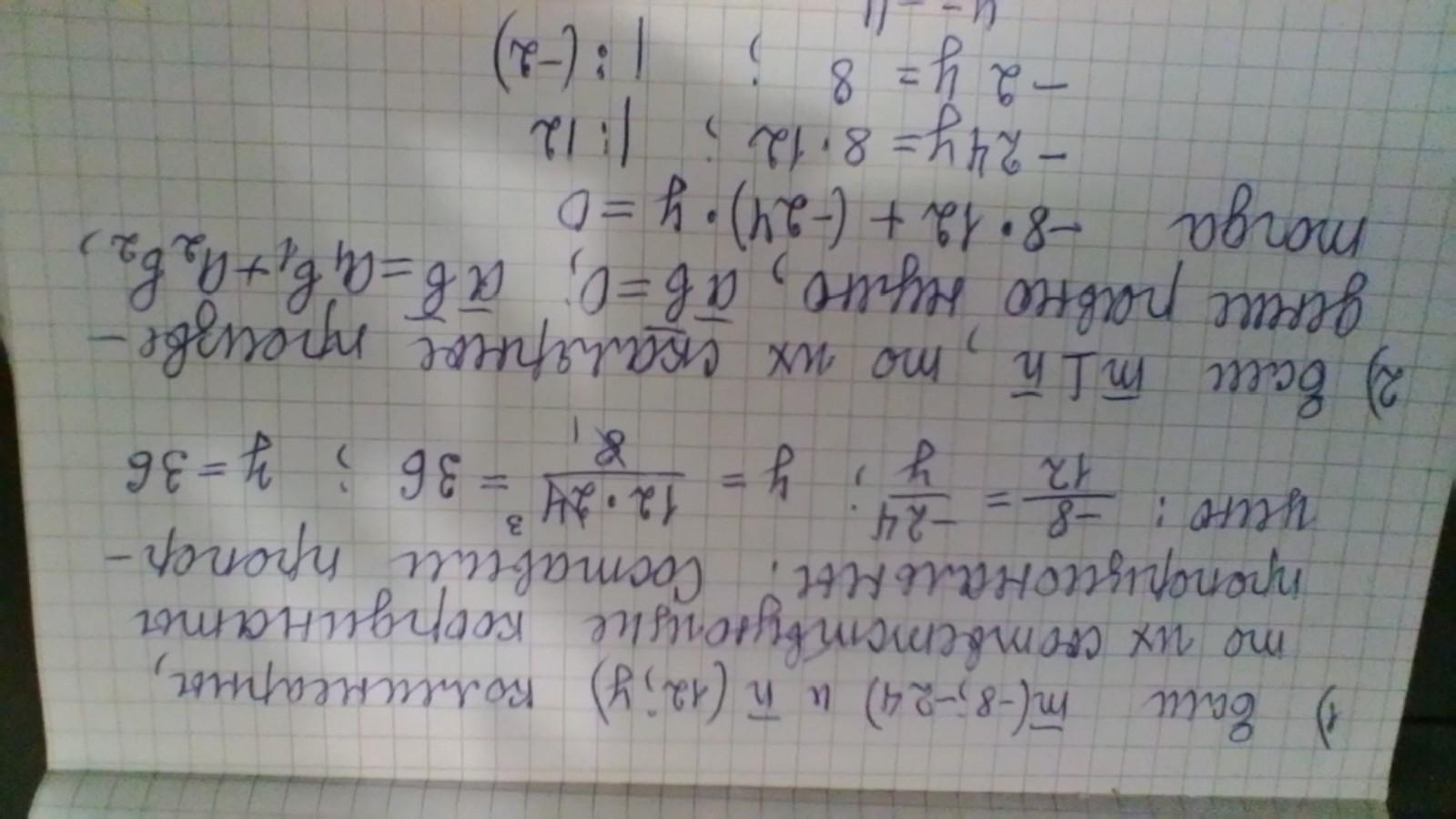 Найдите,значение y,при котором векторы m(-8;-24) и n(12;y)