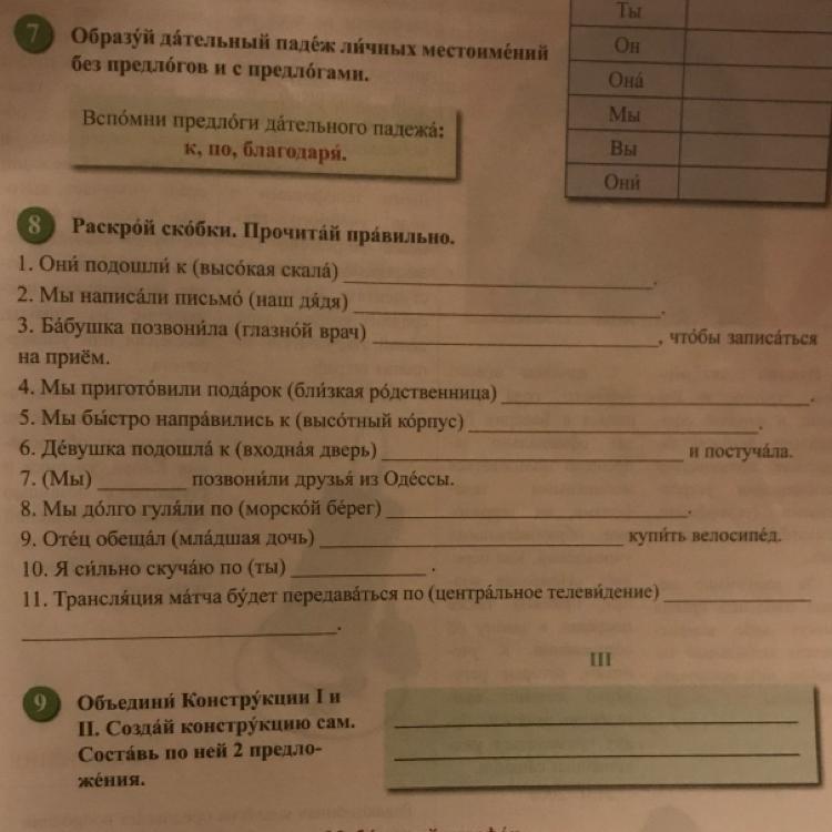 Объяснение:Они подошли к высокой скале. Мы написали письмо нашему дяде. Бабушка позвонила глазному врачу, чтобы записаться на приём. Мы приготовили подарок близкой родственнице. Мы быстро направились к высотному корпусу. Девушка подошла к входной двери и постучала. Нам позвонили друзья из Одессы. Мы долго гуляли по морскому берегу. Отец обещал младшей дочери купить велосипед. Я сильно скучаю по тебе. Трансляция матча будет передаваться по центральному телевидению