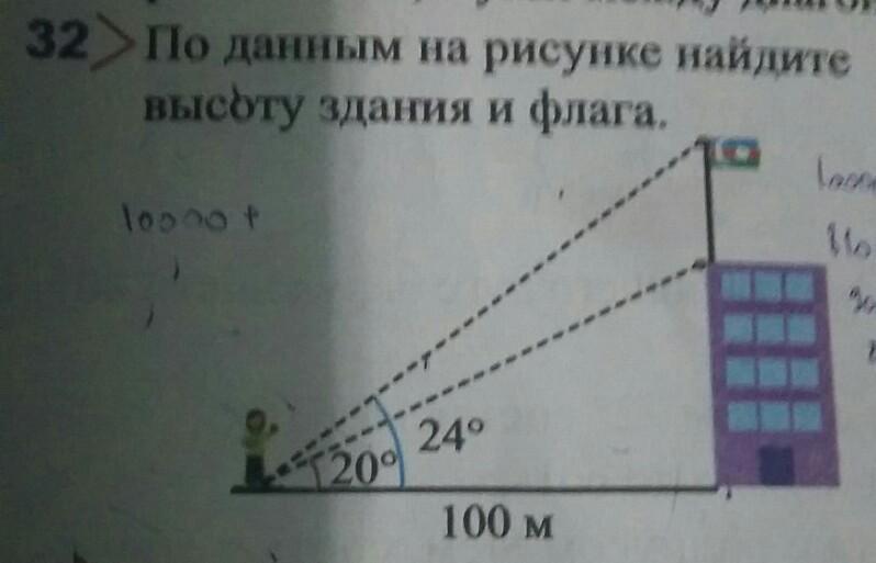 s ≈44.5 - высота флага и здания