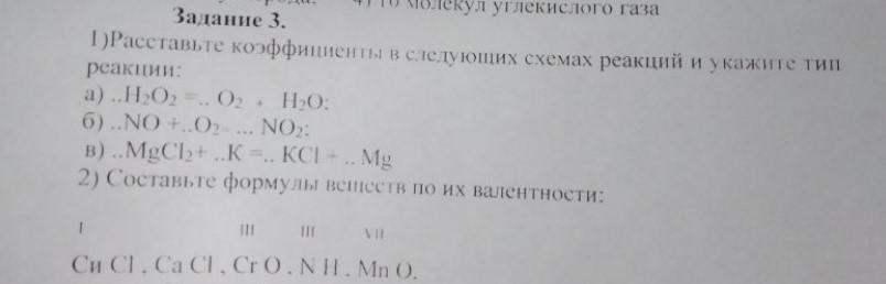 а) 2H2O2=== O2+2H2O. b 2NO+O2===2NO2. В. MgCl2+2K==2KCl+Mg