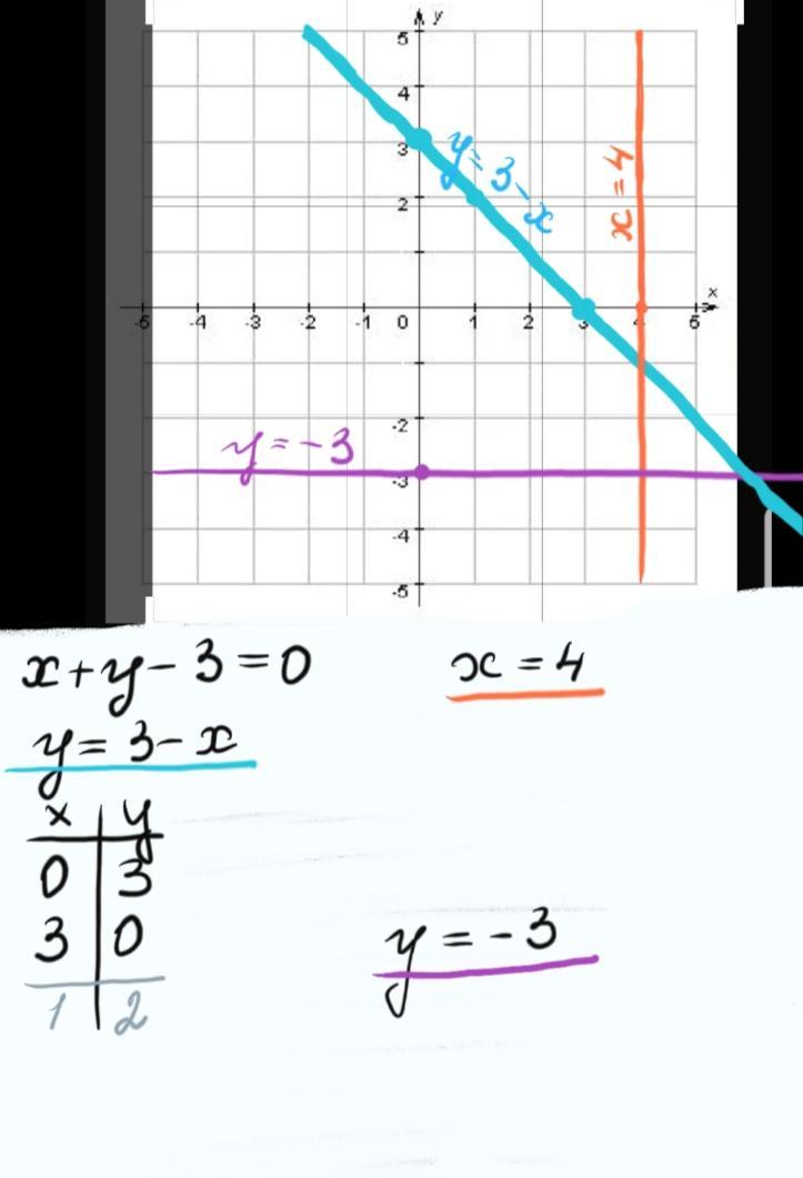 Отметим точки в системе координат и соединим в прямую линию.(рекомендую считать третью точку для себя,например х=1 ,у=2,т.к две точки всегда соединятся в прямую, а три могут не соединиться, тогда надо искать ошибку в расчётах).