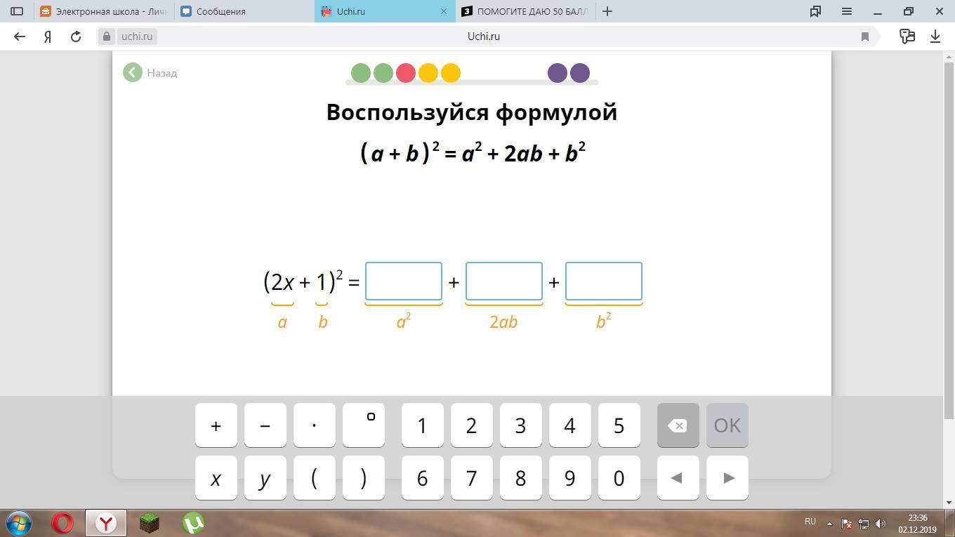 в данном случае a=2x, b=1, соответственно по данной формуле всё и раскрывается