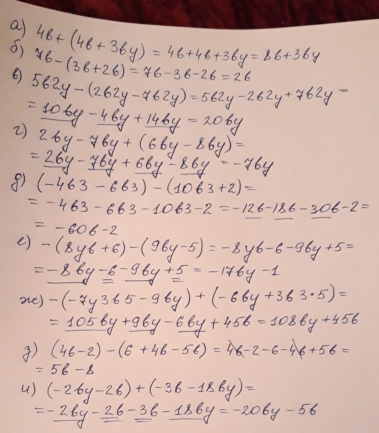 ж) – ( -7у3в5 -9ву)+(- 6ву+3в3х5)