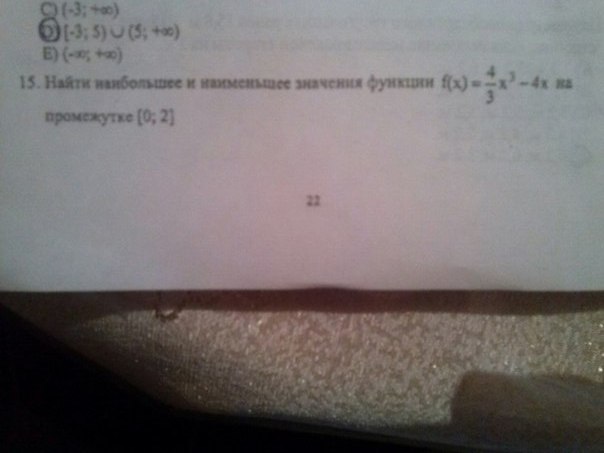 x=1-min, f(1)=-8/3-наименьшее для [0;2]