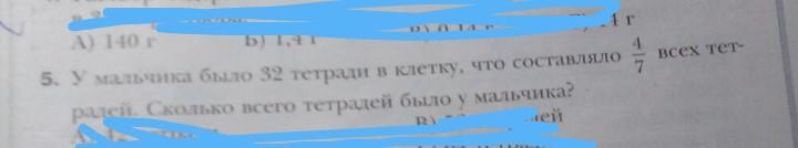 у мальчика было 32 тетради в клетку что составляло 4 седьмых всех тетрадей Сколько всего тетрадей было у мальчиков