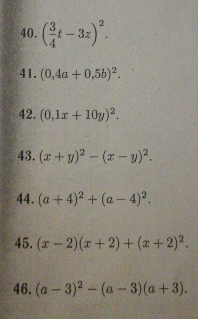 40. (¾t-3z)²= 9/16 t²- 4.5tz+9z²