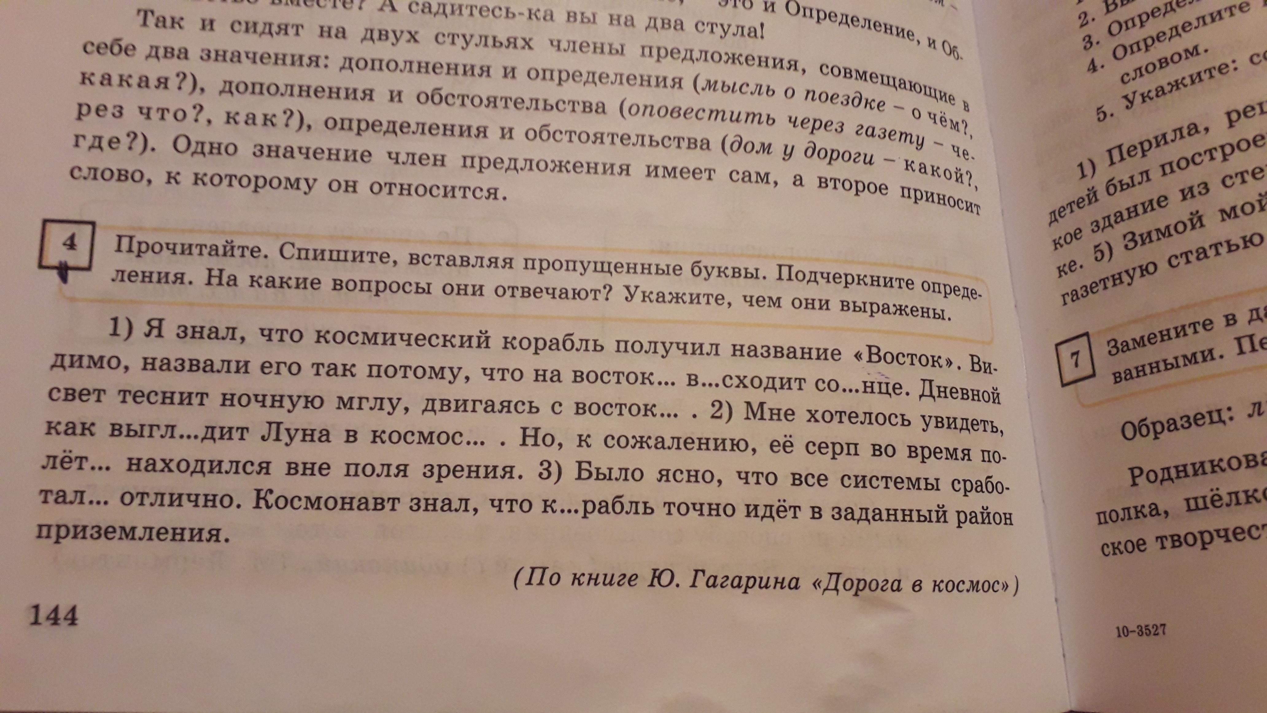 1)Я знал, что космический корабль получит название "Восток".Видимо, назвали его так потому, что на востоке восходит солнце.Дневной свет теснит ночную мглу, двигаясь на восток.2)Мне хотелось увидеть, как выглядит Луна в космосе.Но, к сожалению, её серп во время полёта находился вне поля зрения.3)Было ясно, что все системы сработали отлично.Космонавт знал, что корабль точно идёт в заданный район приземления.