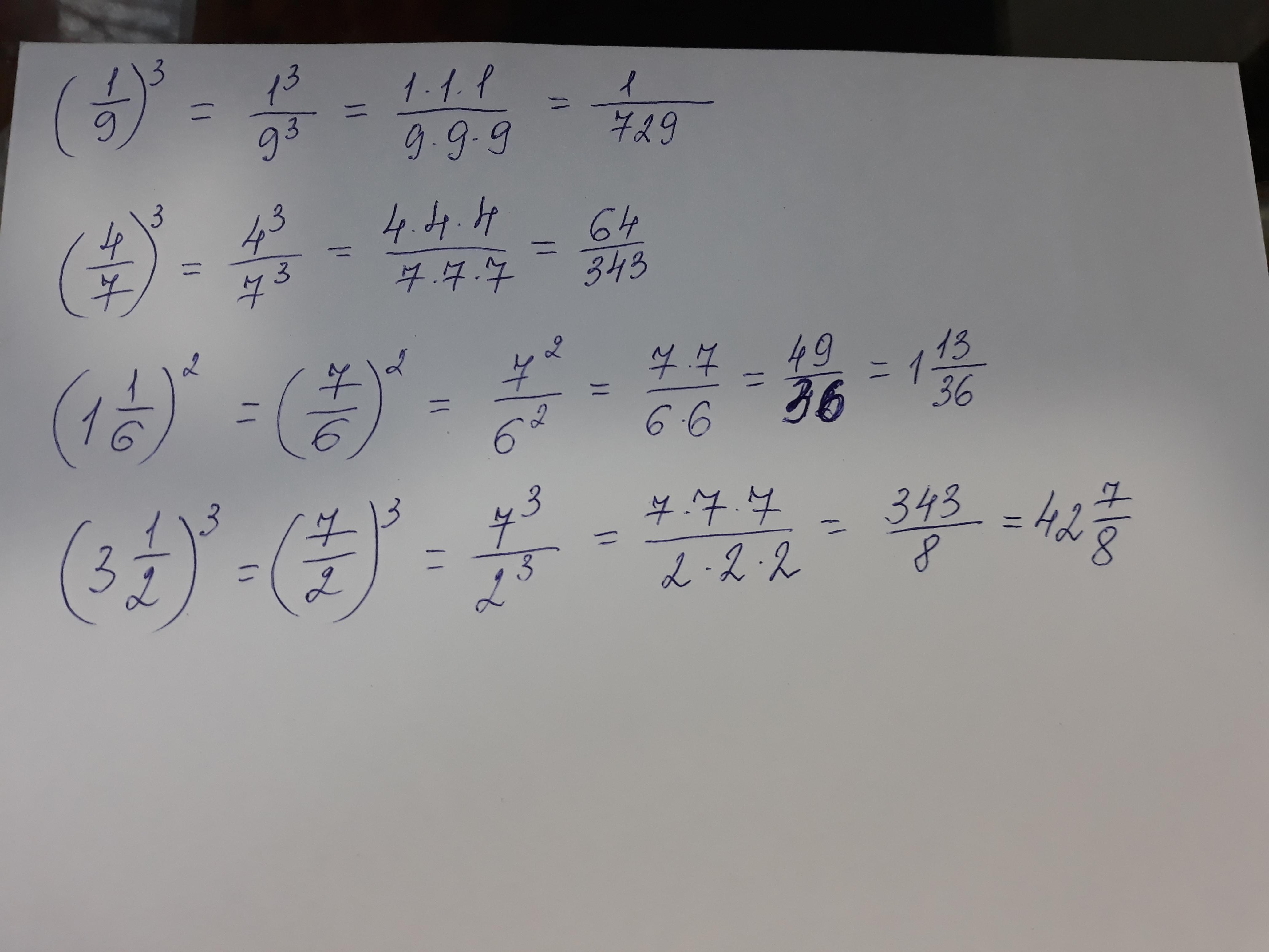 (1/9)³, (4/7)³, (1(целая) 1/6)², (3(целых) 1/2)³