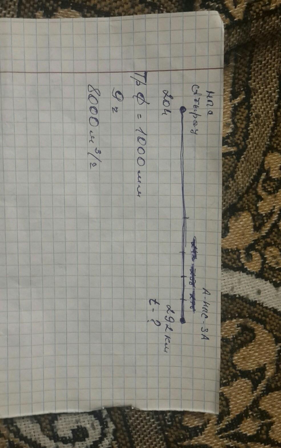 Помогите пожалуйста с задачей, в 9 часов с Атырау вышел скрибок, расход 8000 кубо метров в час, диаметр трубы 1000 миллиметров, через сколько времени скрибок придет на 292 км?