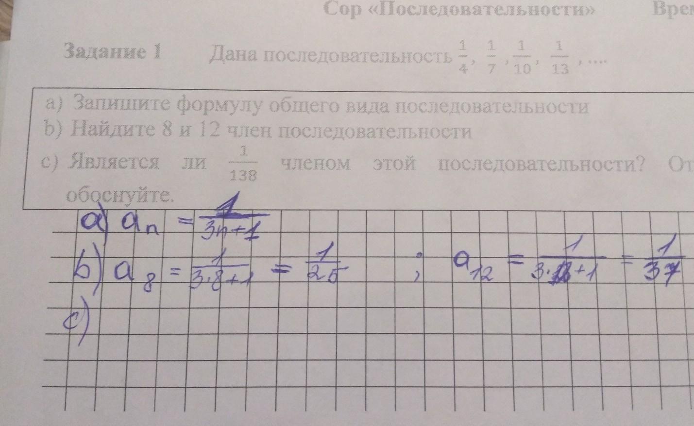 c) Является ли 1/138 членом этой последовательности? Ответ