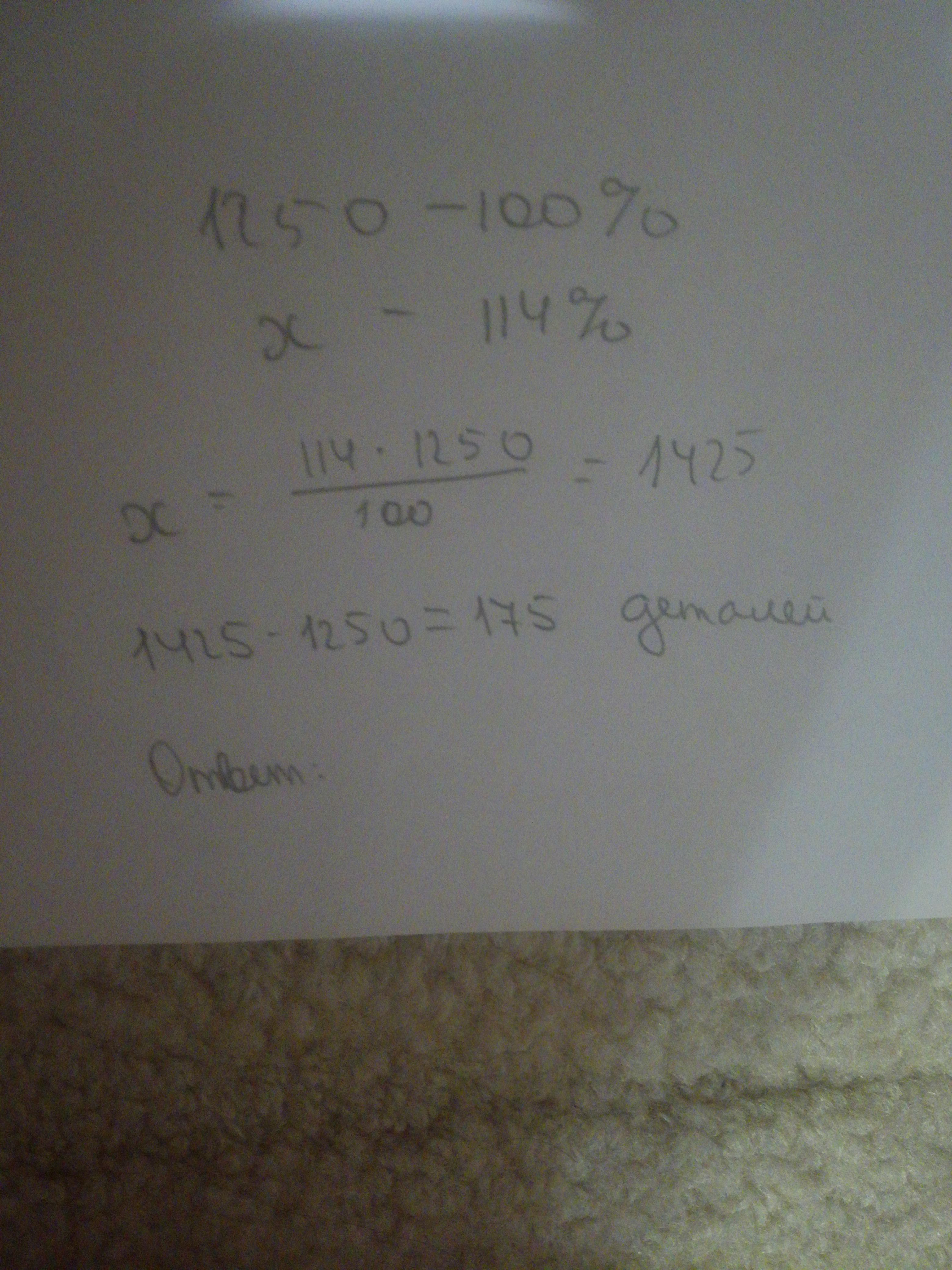 Рабочий за месяц должен обработать 1250 деталей. Он выполнил норму на 114%.
