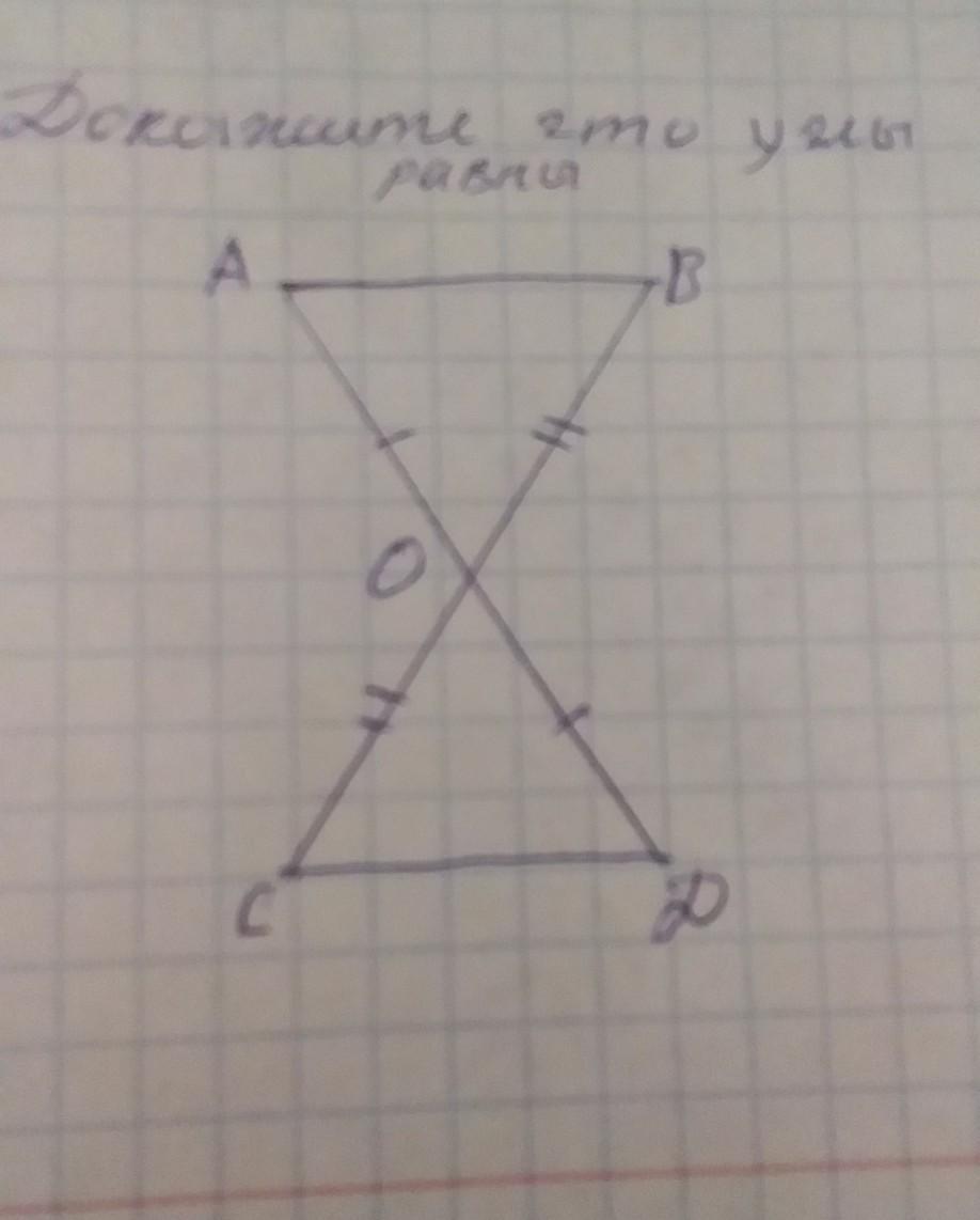 AO=DO,BO=CO,∠AOB=∠DOCвертикальные⇒ΔABO = ΔDCO⇒