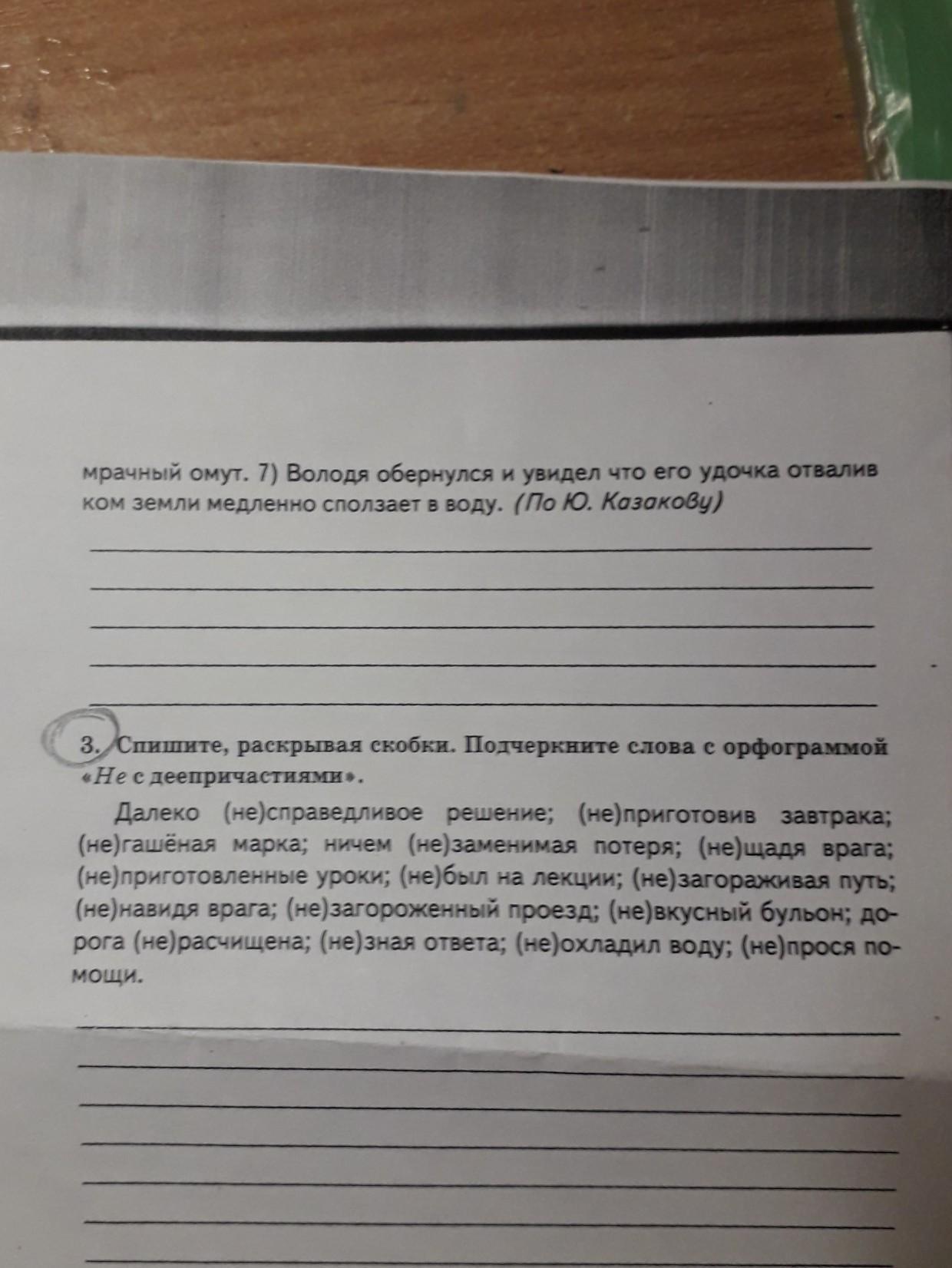 Далеко не справедливое решение; не приготовив завтрака; негашёная марка; ничем не заменимая потеря; не щадя врага; неприготовленные уроки; не был на лекции; не загораживая путь; ненавидя врага; незагороженный проезд; невкусный бульон; дорога не оасчищенна; не зная ответа; не охладил воду; не прося помощи.
