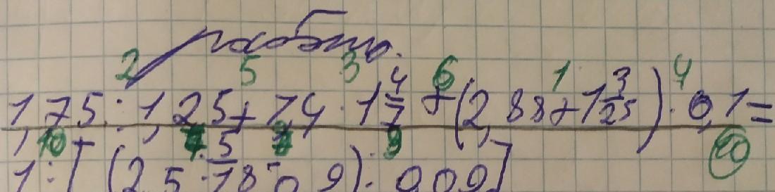 1,75:1,25+14·1 4/7 +(2,88+ 1 3/25)·0,1=9,7