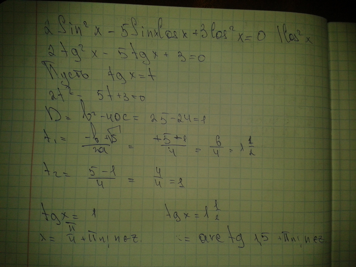Вроде так,делим ан косинус квадрат,получаем тангенс,делаем подстановку и решаем квардатное
