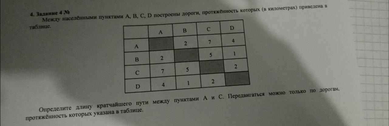Объяснение: От конечного "города" ищем наименьшее расстояние до следующего города и так двигаемся до изначального "города".
