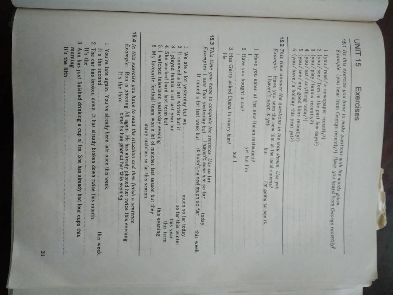 2. Have you seen Tom in the past few days?