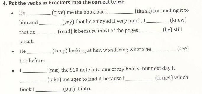 1) gave, thanked, said, knew, read (неправильный глагол,произносится как [рэд]), were.