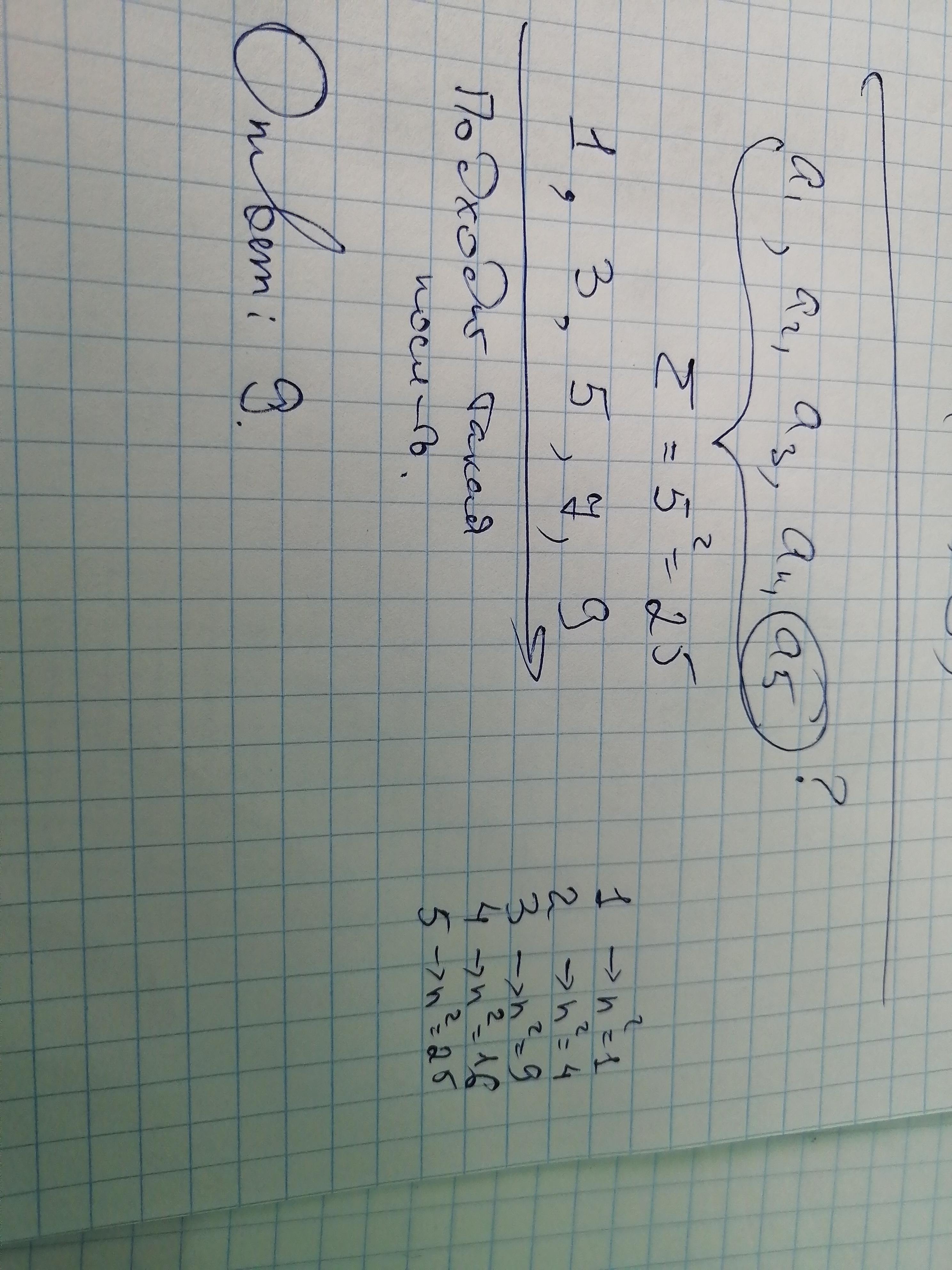 последовательность a1 , a2 , аn задается следующим условием Сумма первых n членов равно n^2 Чему равен пятый член этой последовательности