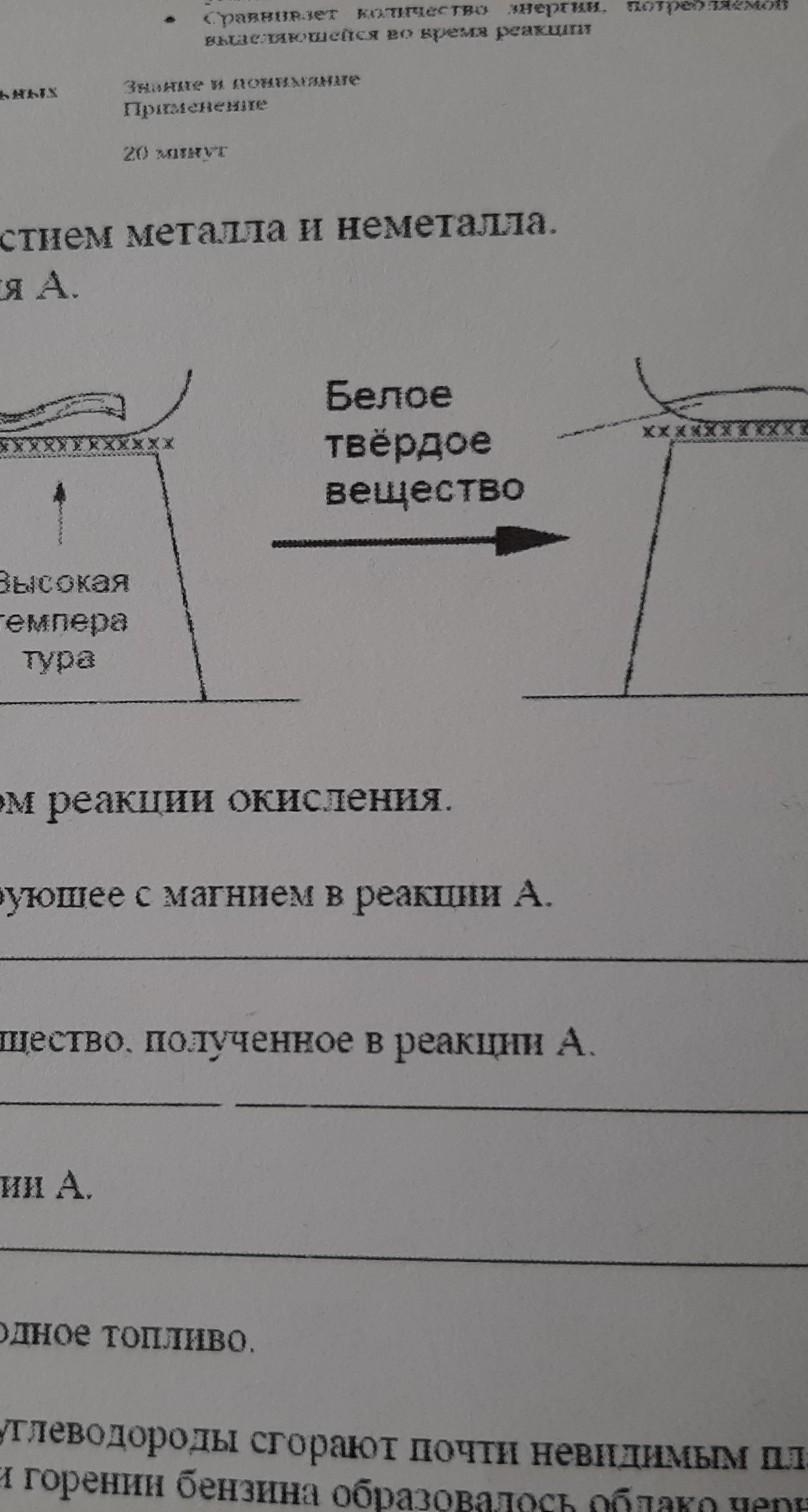 а)вещество реагирующее с магнием кислород О2 б)белое твердое вещество полученное в реакции магний оксид MgO C)уравнение 2Mg+O2=2MgO
