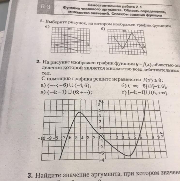 2. нам нужны значения меньше нуля, значит подходят под буквами а) и в), но у нас больше или равно нулю, следовательно вариант а) отпадает, так как НЕ включает ноль