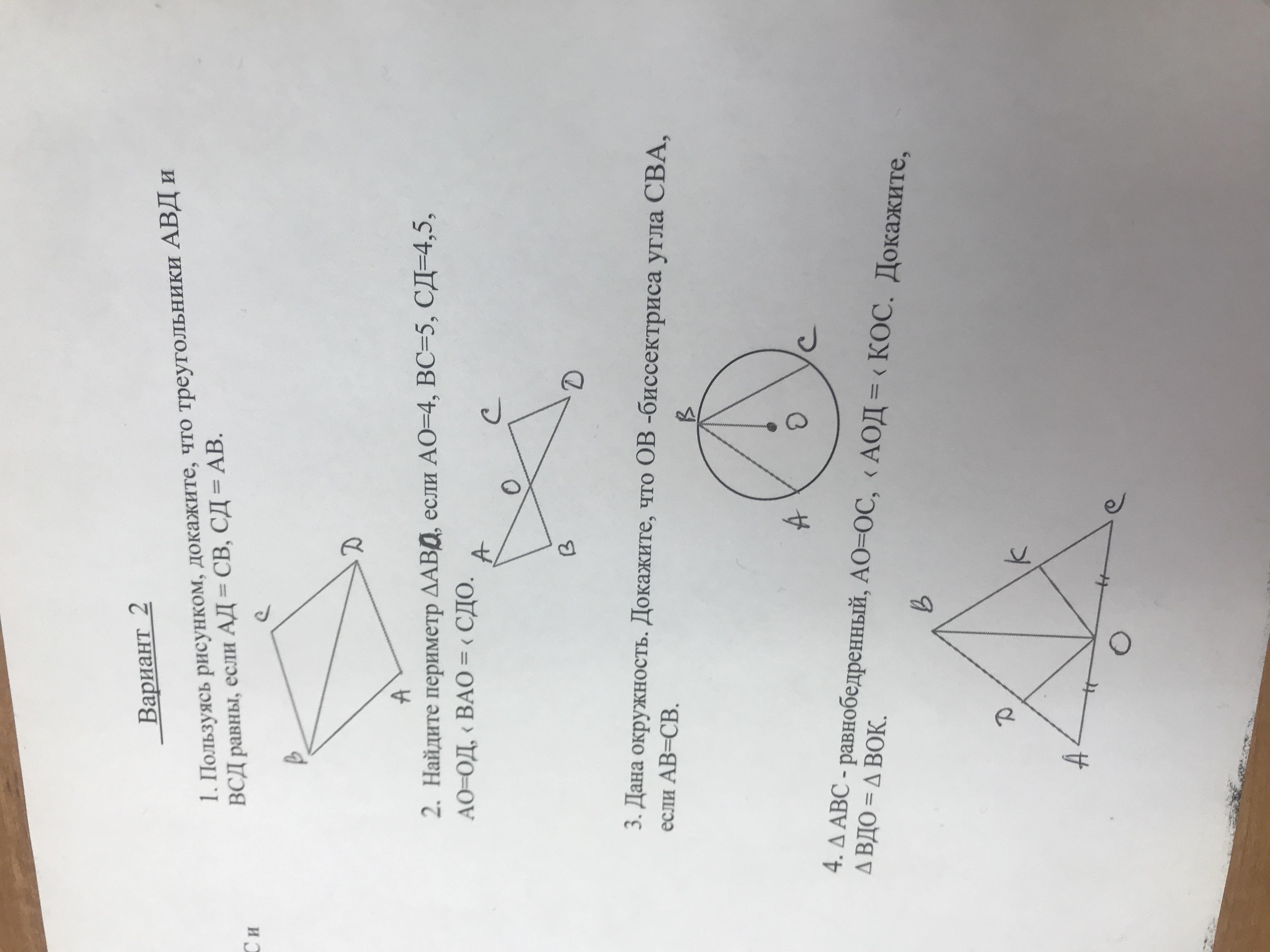 Ответ:(4 номер)Дано:АО=ОС, (✓я так буду отмечать угол)✓AOD=✓KOC, треугольник ABC-равноб.