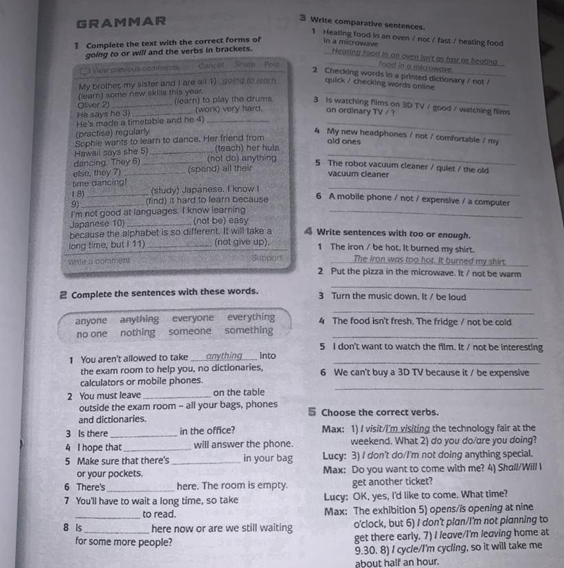1) will learn, is going to work, will practice, will teach, aren’t going to do, will spend, am going to study, will find, is not going to be, won’t give up