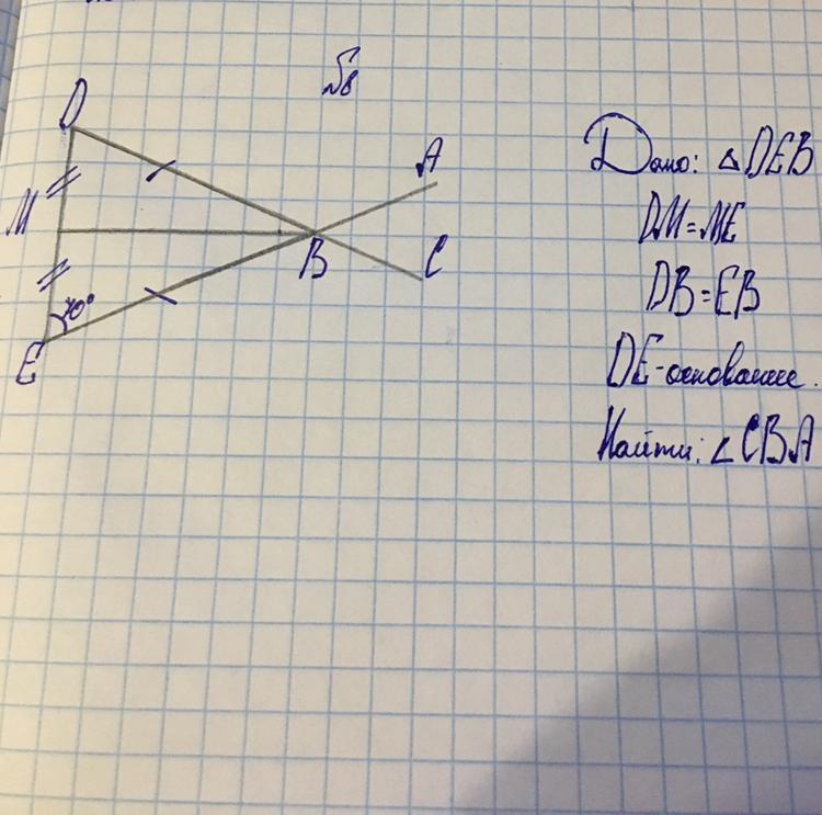 ∠DВЕ=∠АВС вертикальные углы равны, значит ∠СВА=40°.