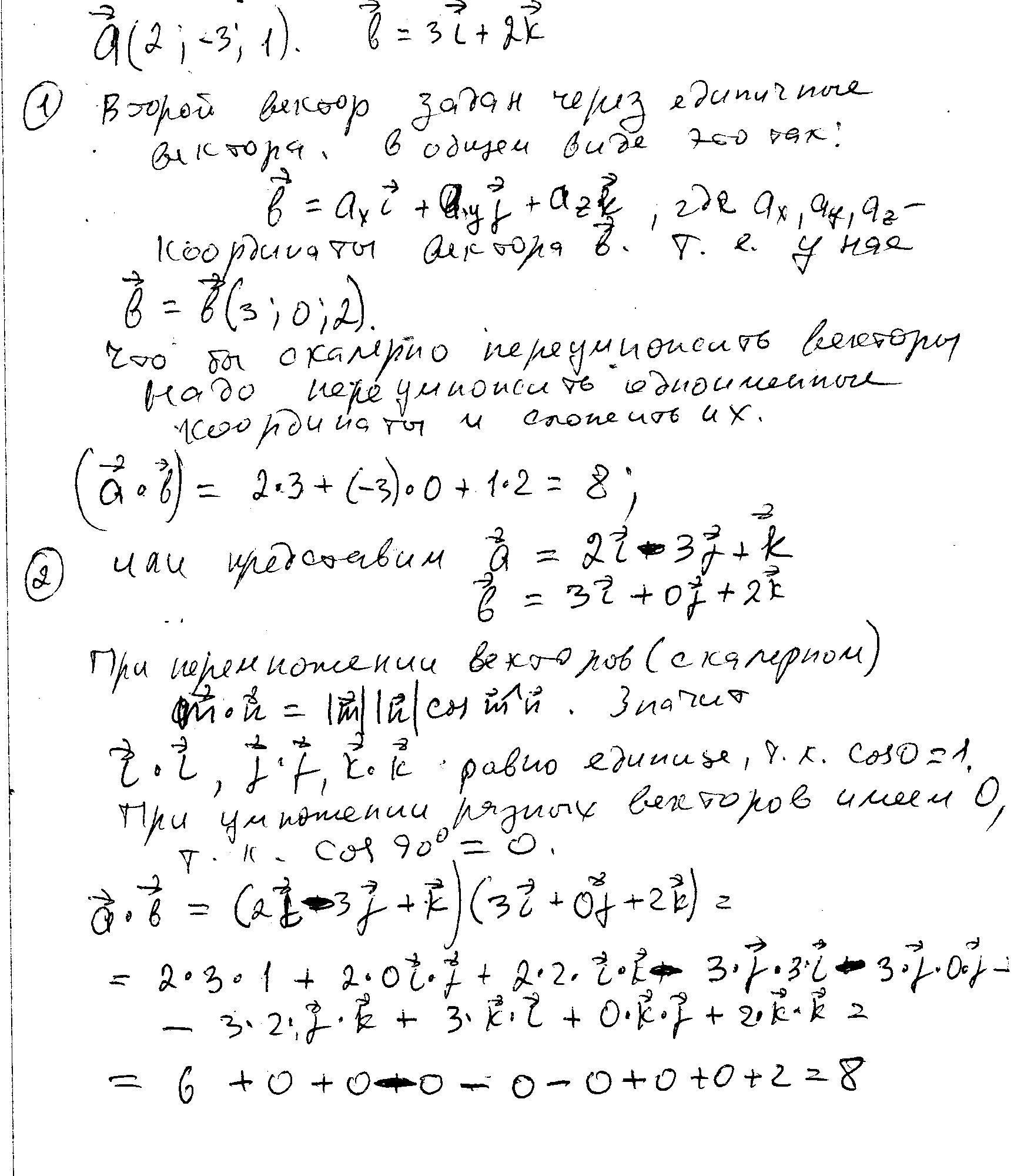 Найдите скалярное произведение векторов a и b, если а) a(2; -3; 1) и b = 3i+2k