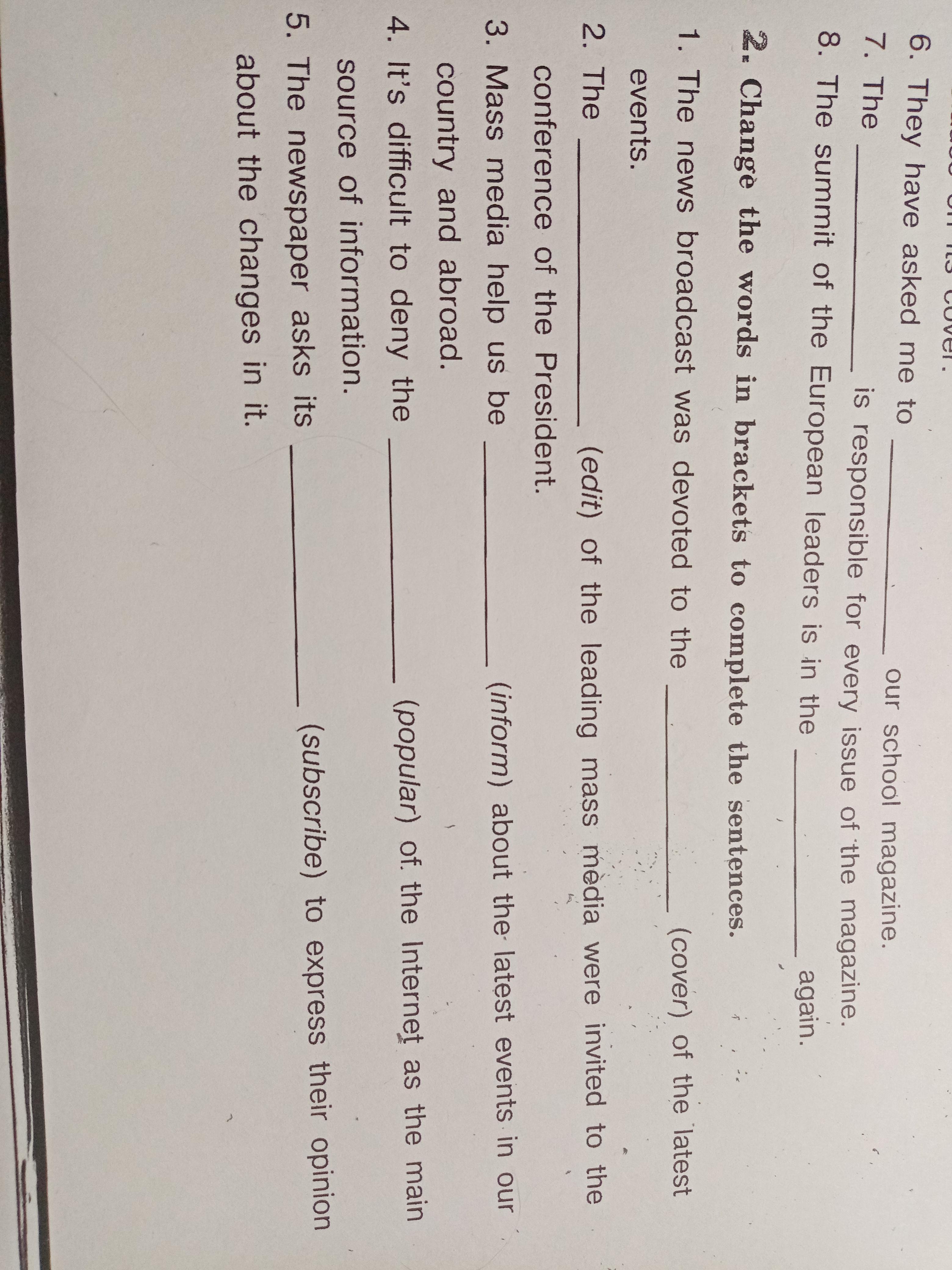 Ответ:1 - covers 2 - edits 3 - informs 4 - populars 5 - subscribes