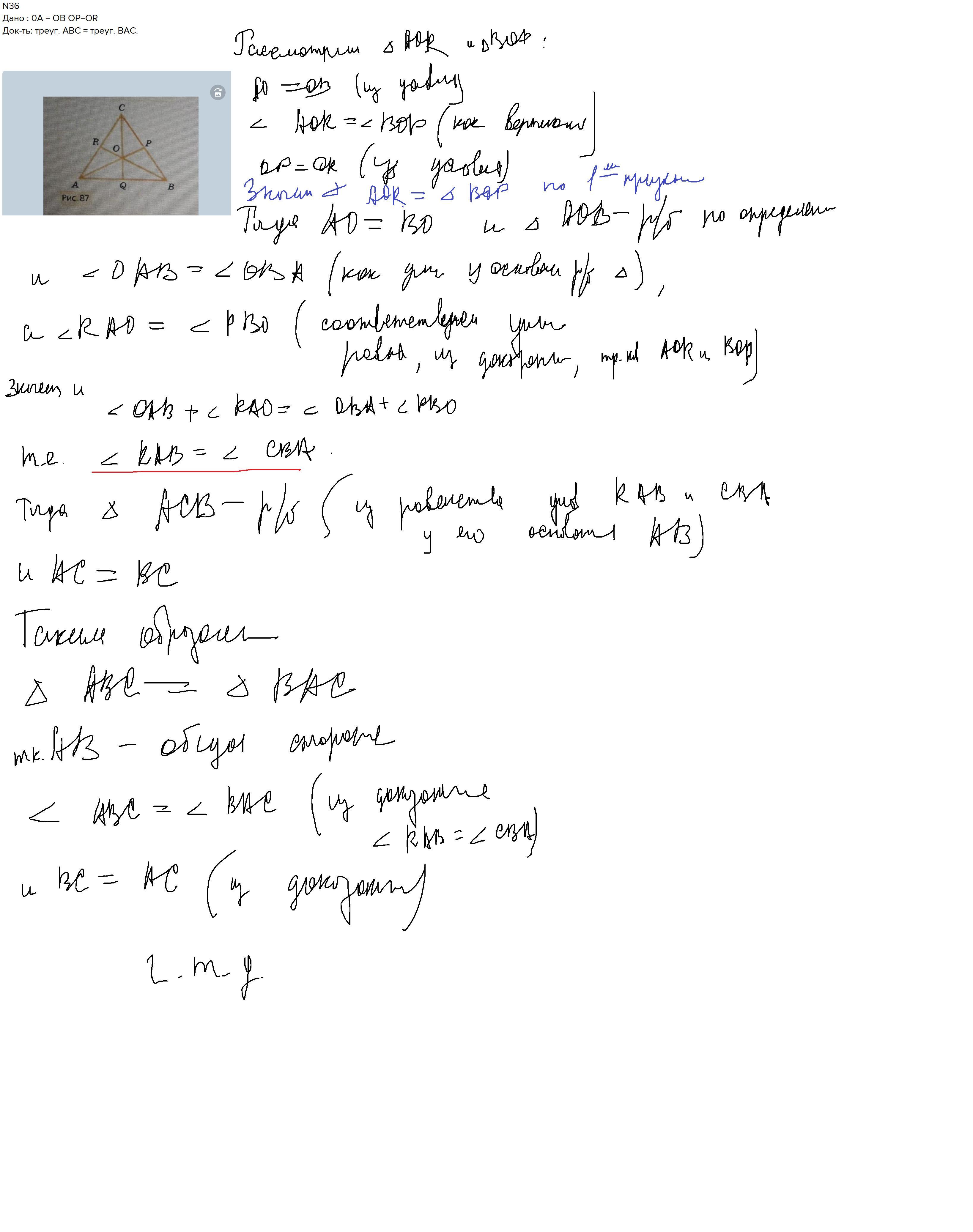 Объяснение:Док-ть: треуг. ABC = треуг. BAC