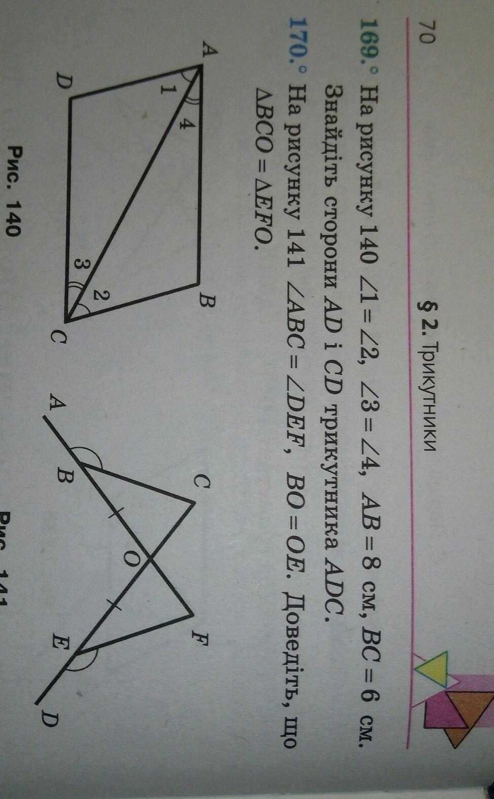 ΔАВС=ΔАДС по стороне и двум прилежащим углам: : АС-общая, ∠1=∠2 по условию, ∠3=∠4 по условию. В равных треугольниках соответственные элементы равны , значит ВС=АД=6см, АВ=ДС=8 см