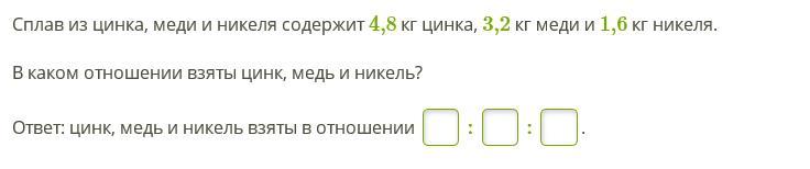 Медь, цинк, никель=>4.8:3.2:1.6=3:2:1