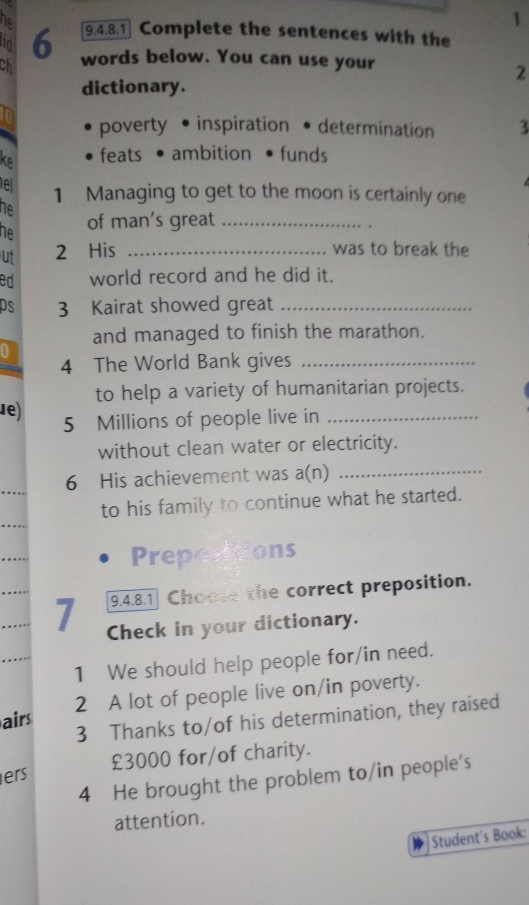 9.4.8.1 Cheese the correct preposition. Check in your dictionary.