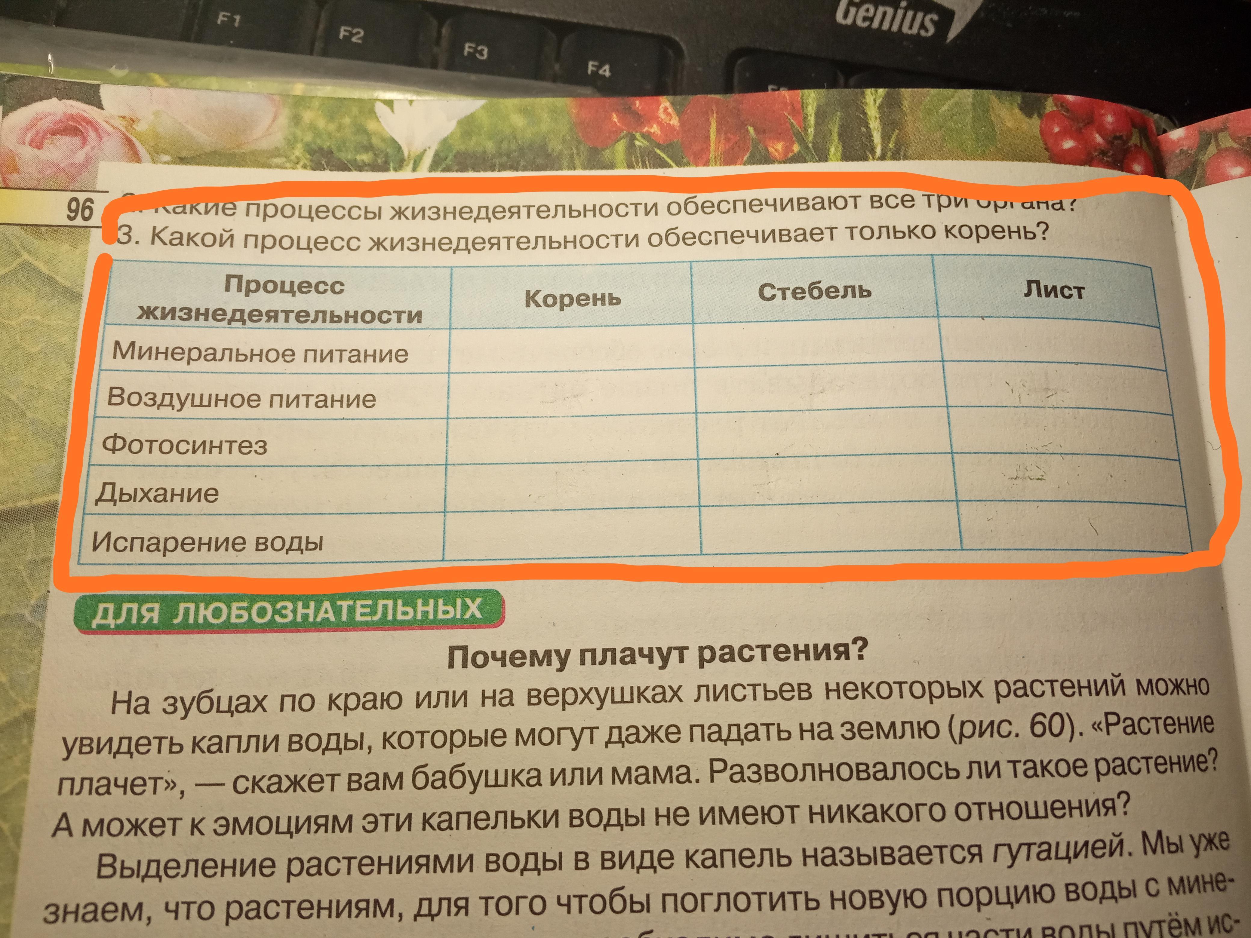 Если что, то вопрос состоит в каких частях растения происходят действия, перечисленные слева.