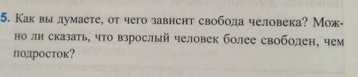 Я считаю что свобода человека зависит от его поступков. Взрослый свободнее чем подросток т.к. подросток зависит от своих родителей до 18 лет.