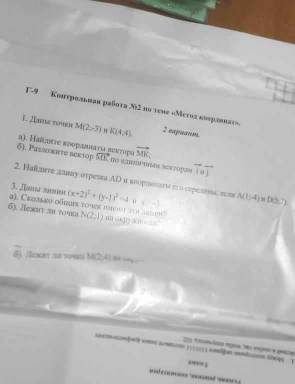 в третьем задании круг с центром в точке -2;1 с радиусом 2 и прямая х=-3 общих точек не имеет, точка N окружности не пренадлежит
