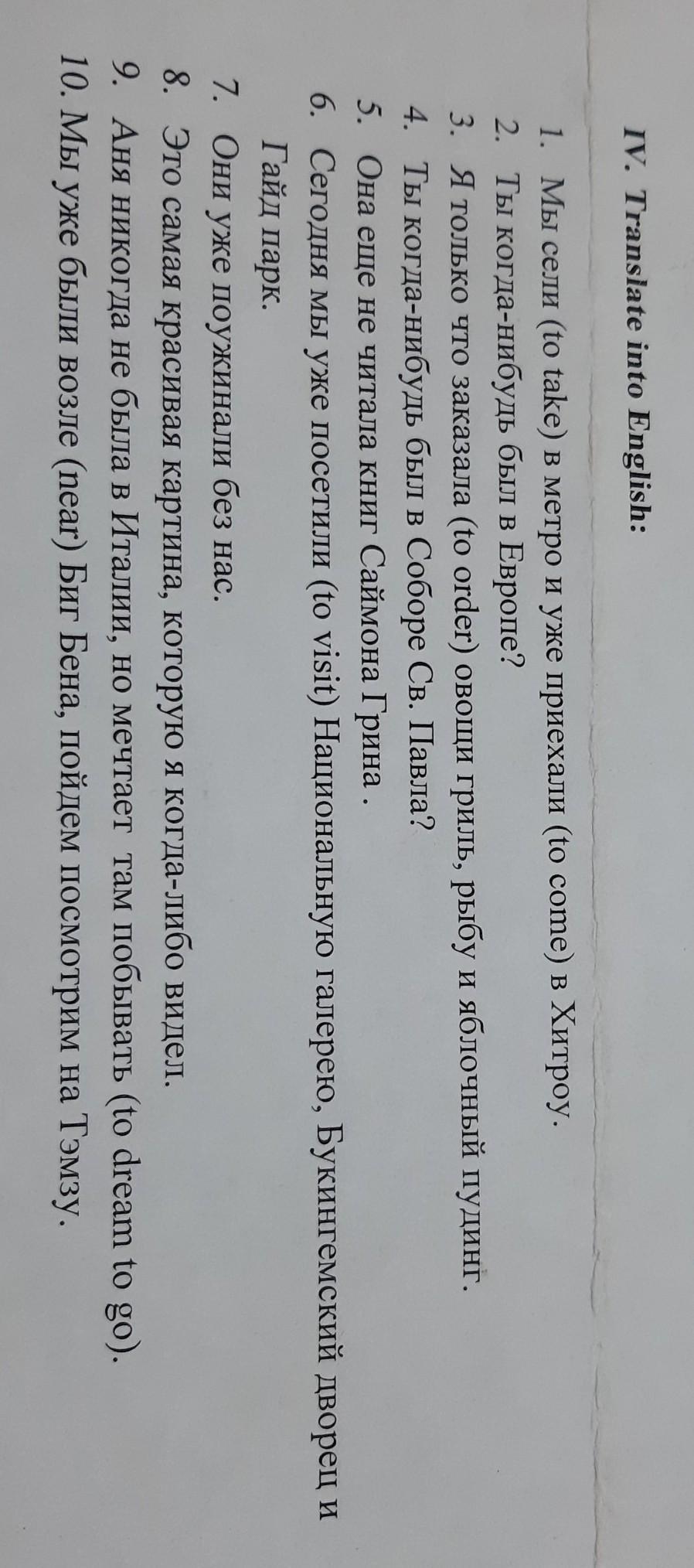 6. Сегодня мы уже посетили (to visit) Национальную галерею, Букингемский дворец и Гайд парк.