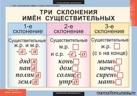 1 склонение Существительные женского, мужского и общего рода с окончанием -а / -я в именительном падеже единственного числа: жена, земля, слуга, юноша, забияка. Существительные на -ия (армия, Греция) имеют в дательном и предложном падежах единственного числа окончание -и.