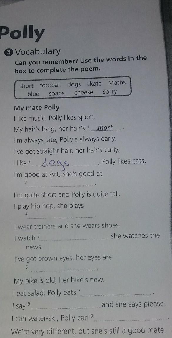 1)short2)dogs3)Maths 4)Football5)Soaps 6)Blue 8)Sorry
