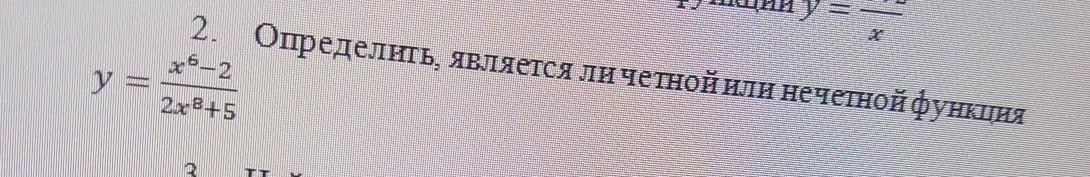 у(-х)=( (-х)⁶-2)/( 2*(-х)⁸+5)=(х⁶-2)/(2х⁸+5)=у(-х).